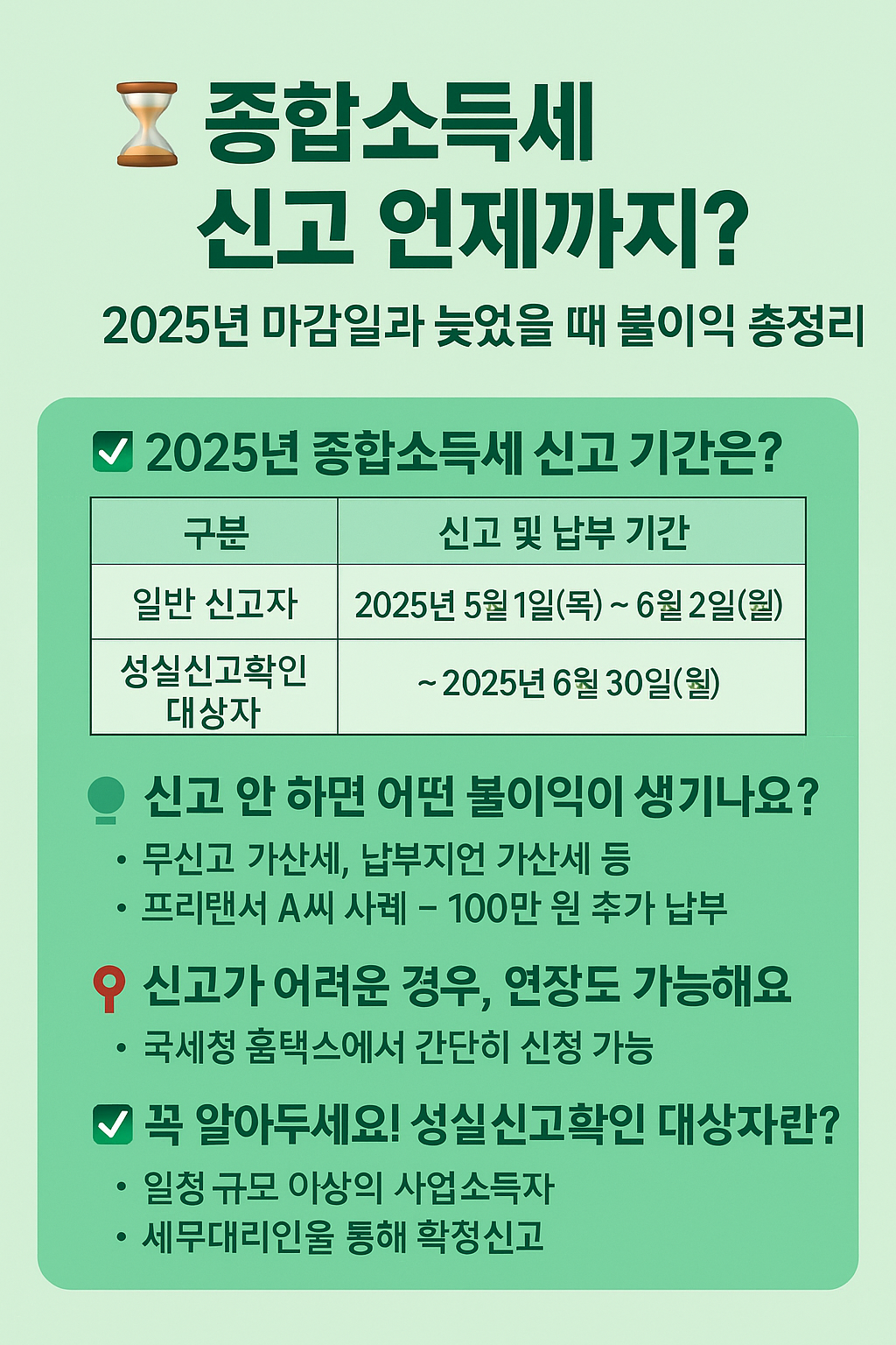 이번 글에서는 2025년 종합소득세 신고 마감일과 지각 시 불이익,