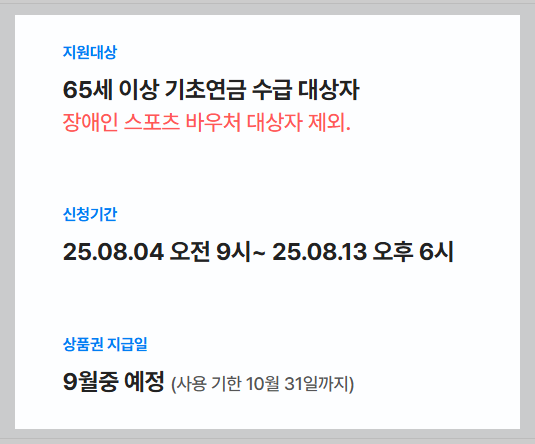 - 지급 시기 : 8월 말에 지원 대상이 발표되며, 9월 중에 지급받아 사용하실 수 있습니다.