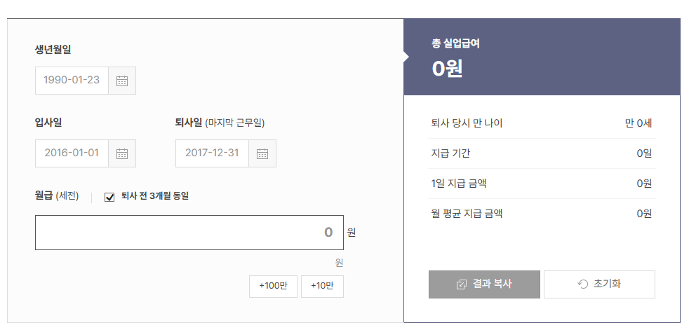 - 실업급여 계산기: