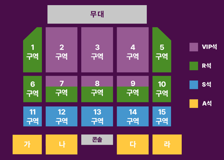 공연장의 좌석 배치도를 사전에 확인하고 원하는 구역을 정해 두세요.