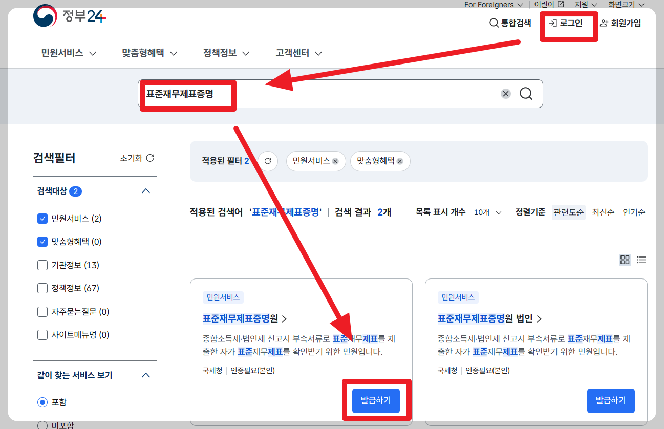 | 정부24 | 검색 후 '표준재무제표증명' | 공동인증서 필요, 즉시 출력 |